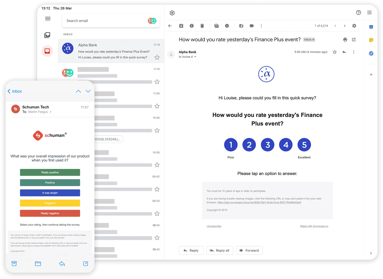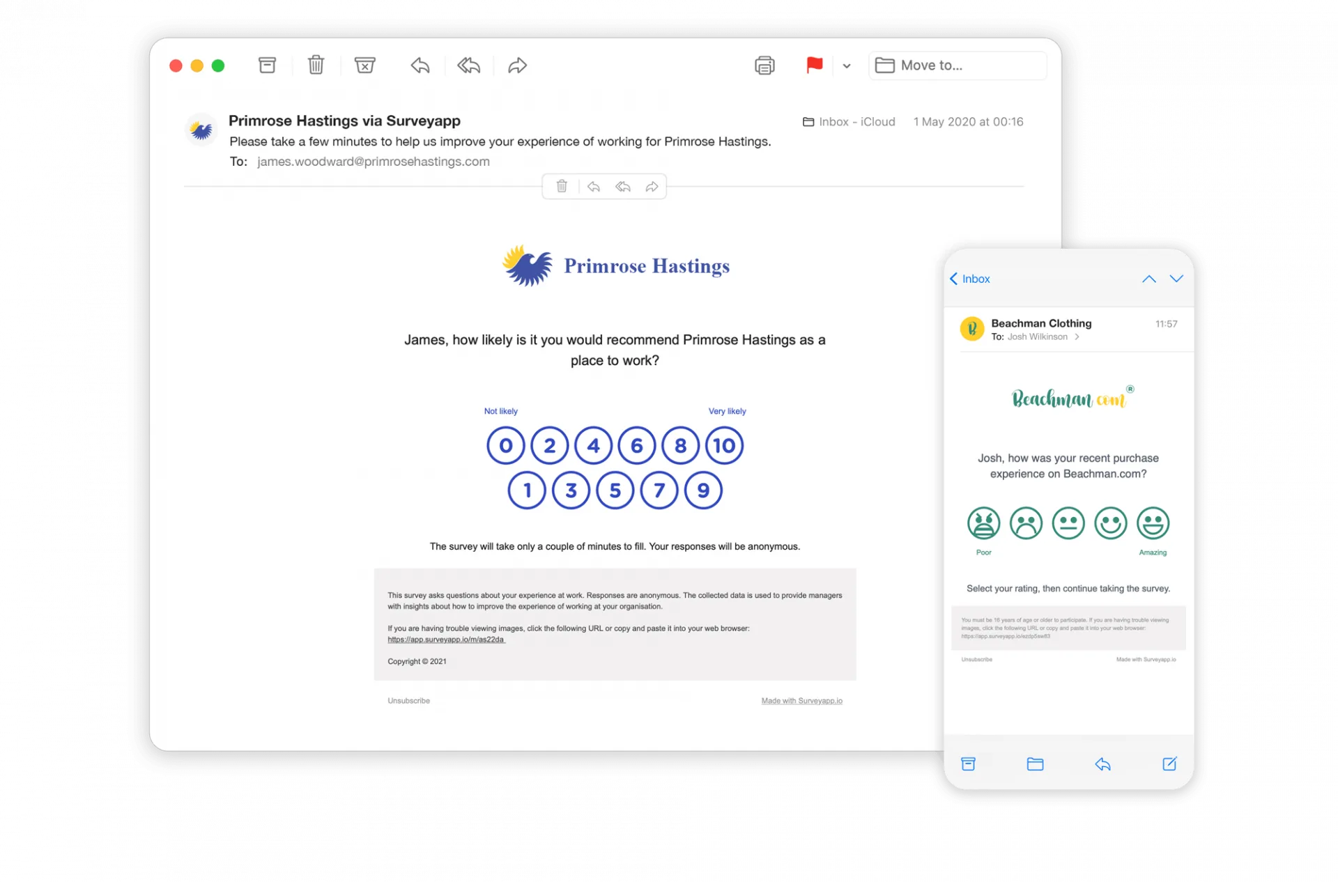 Regardless of whether your customers and employees are using a mobile device, tablet, or computer, InRate email surveys are crafted to appear visually appealing and operate flawlessly across all email clients, applications, and web browsers, every single time.