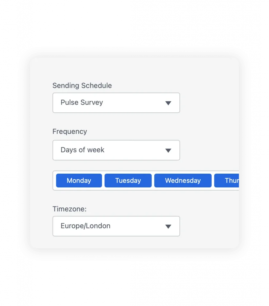 Implement Pulse Surveys to foster immediate employee feedback. These concise and strategic surveys enable you to engage with front-line staff to rapidly assess and enhance performance during crucial times. You have the flexibility to deploy various survey schedules, frequencies, and questions throughout your enterprise.