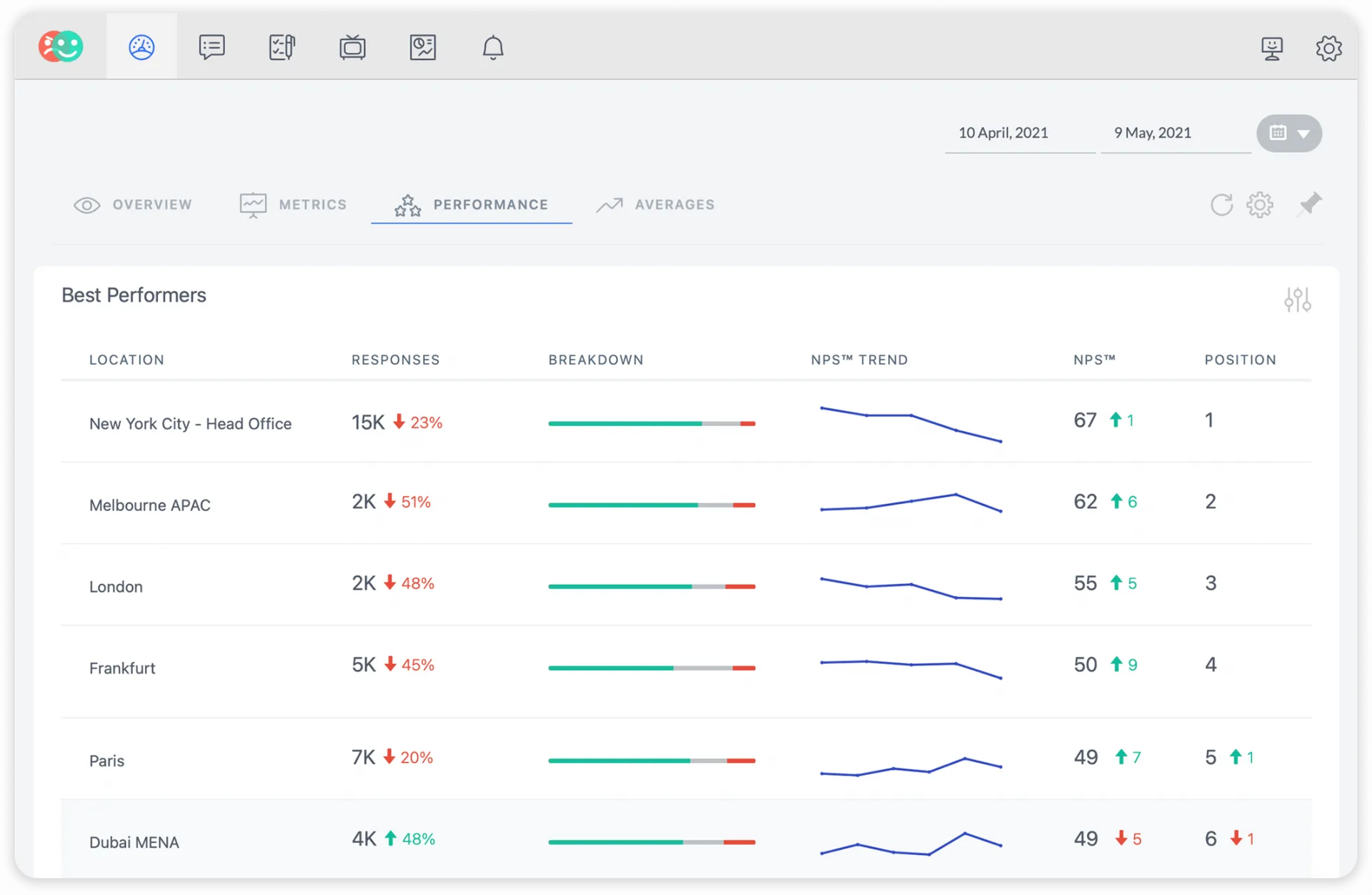 Featuring clear visualizations of live data, InRate’s reporting platform is engineered for adaptable, role-specific data displays and robust analytical capabilities. Identify patterns and trends within your data, benchmark scores, and review incoming comments. Observe your data becoming visually dynamic and monitor your progress over time.